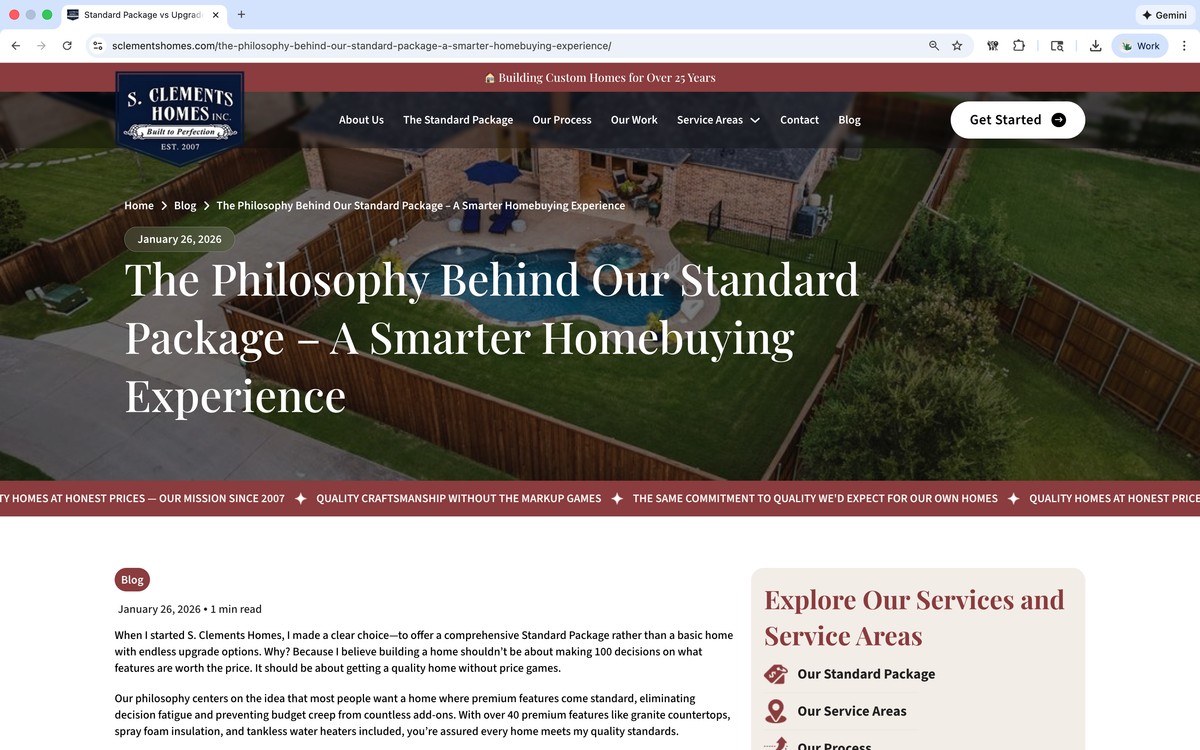 Mike Hollaway Custom Homes’ extensive professional photography library and three decades of award-winning projects provided rich material for training our agentic AI system. This deep knowledge base enabled us to create content that authentically captures their voice, expertise, and craftsmanship. The result is a website and ongoing content strategy—including daily blog posts and social media—that accurately and honestly demonstrates their work which resonates with customers their luxury home market.